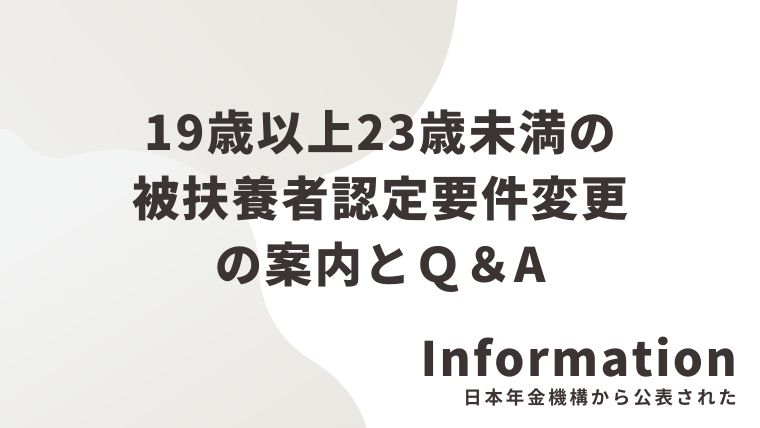 日本年金機構から公表された19歳以上23歳未満の被扶養者認定要件変更の案内とQ&A
